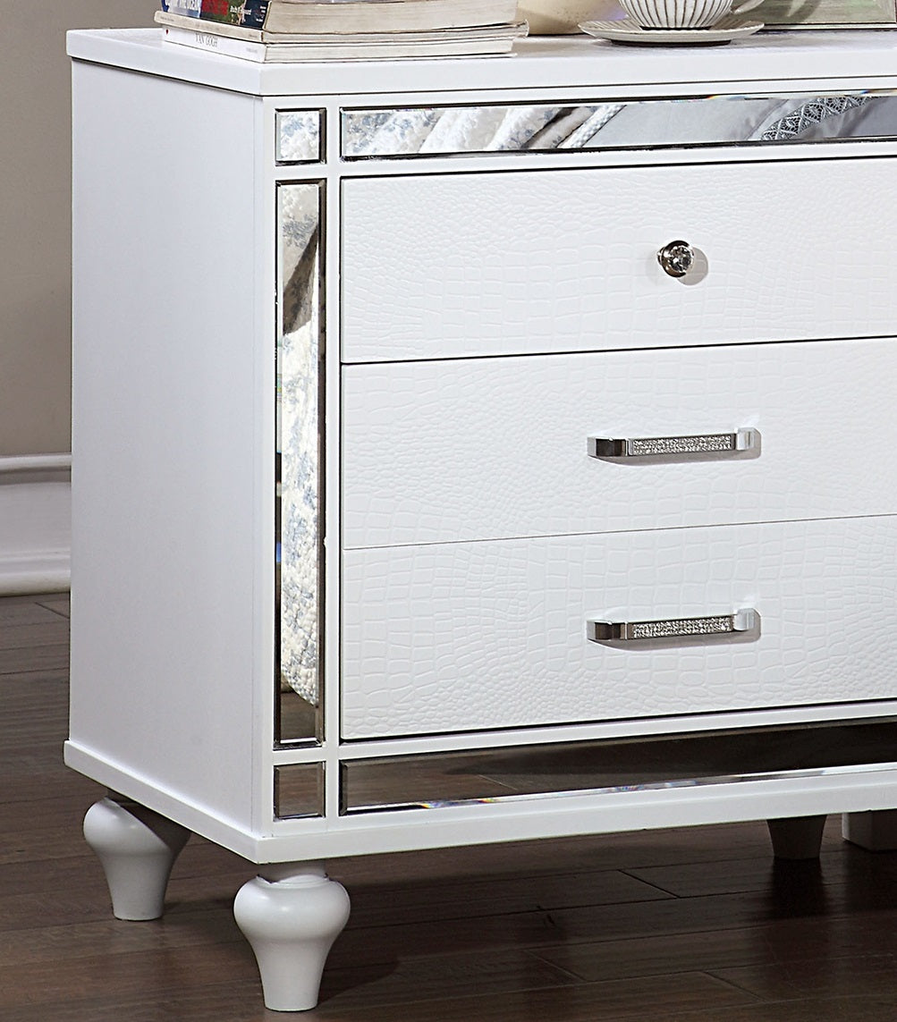 Features:- Contemporary White Mirror, Solid Wood, Wood Veneer, Others Crocodile-Textured Detail Felt-lined Top Drawers Mirror Trim