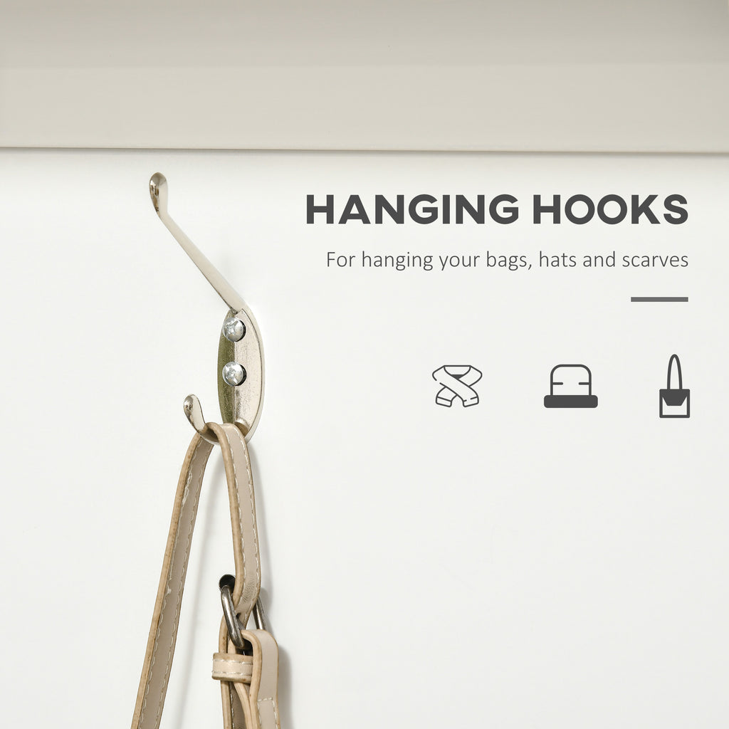 - ENTRYWAY STORAGE SOLUTION: Comes with three double hooks for bags, scarves, jackets, dog leashes, and other things you want close to your hand. The upper shelf area is used for decorative storage. Tuck the shoes and boxes inside the storage cabinet, and store the kids' hats, mittens, and scarves in the drawers to keep your belongings hidden and free from dust