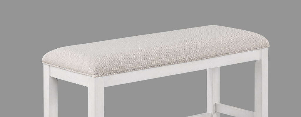 This counter-height dining bench is upholstered in a grey fabric and finished in a sleek black color. This bench is designed to be used at a counter-height table, providing comfortable seating while still allowing plenty of leg room. This gorgeous bench features a sturdy frame and is designed to be durable and long-lasting. This bench is perfect for any kitchen or dining space, adding both function and style.