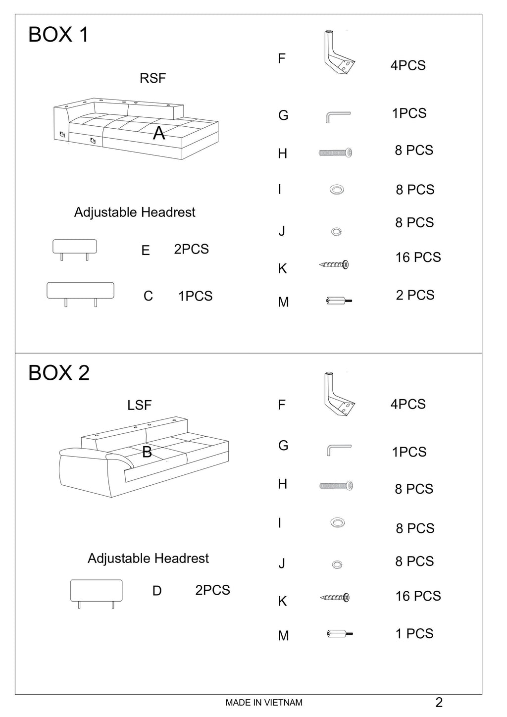- 2pcs Sectional Sofa (Right Facing Chaise, Left Facing Sofa) Only.