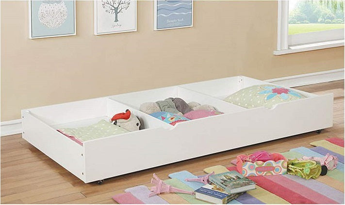 Maximize space with this transitional white full over full bunk bed, crafted from durable solid wood. It features an attached ladder for easy access and includes a versatile trundle, perfect for sleepovers or extra storage. Ideal for any bedroom, this stylish bed combines functionality with timeless design.