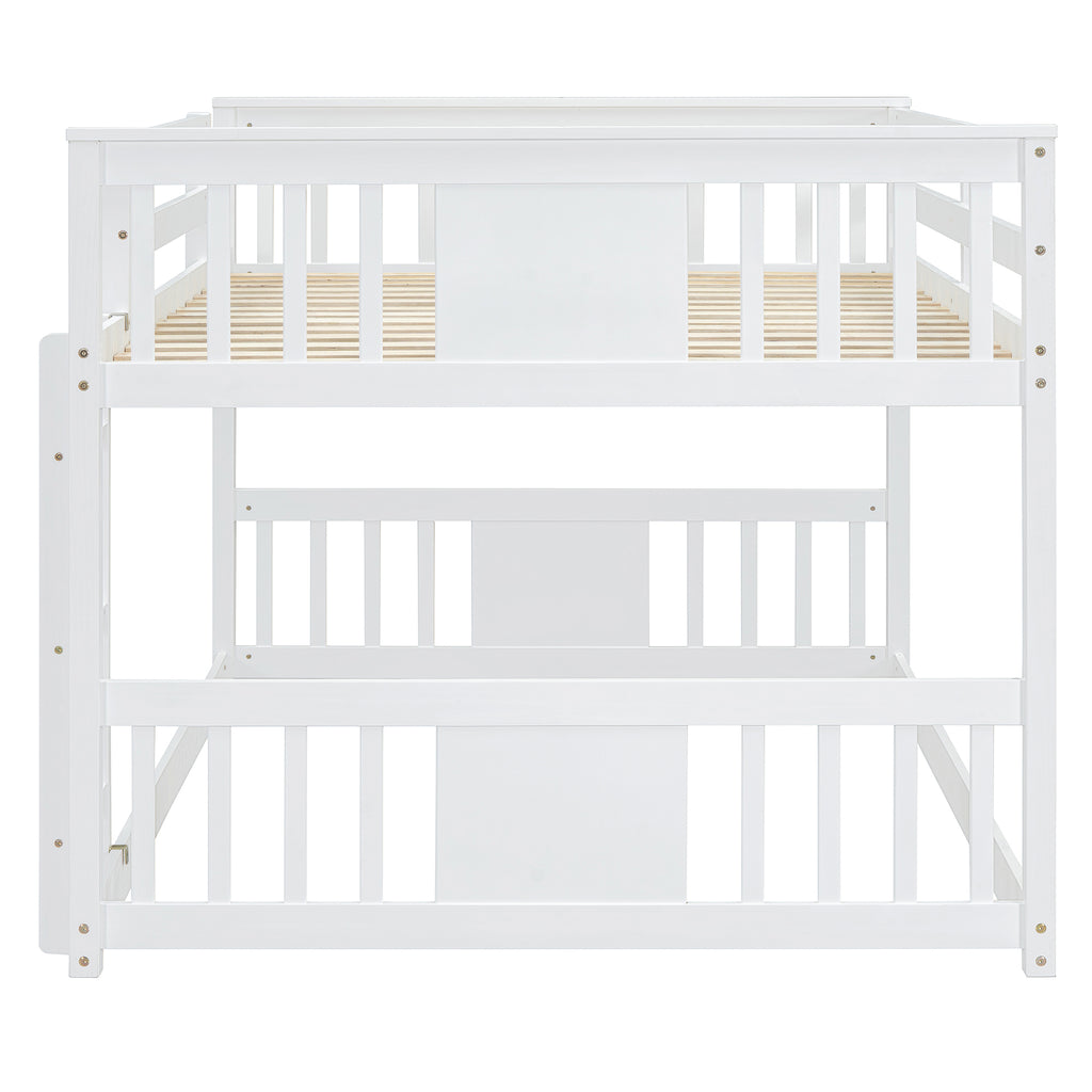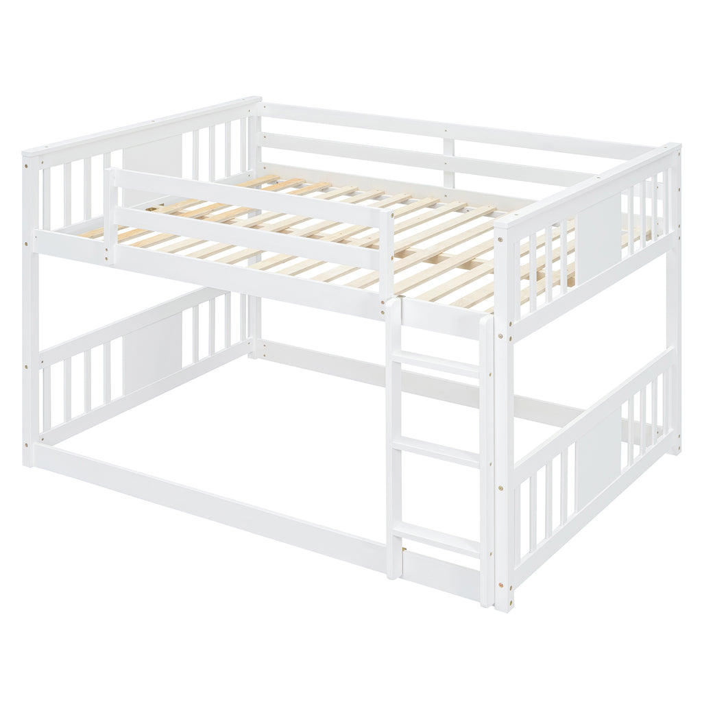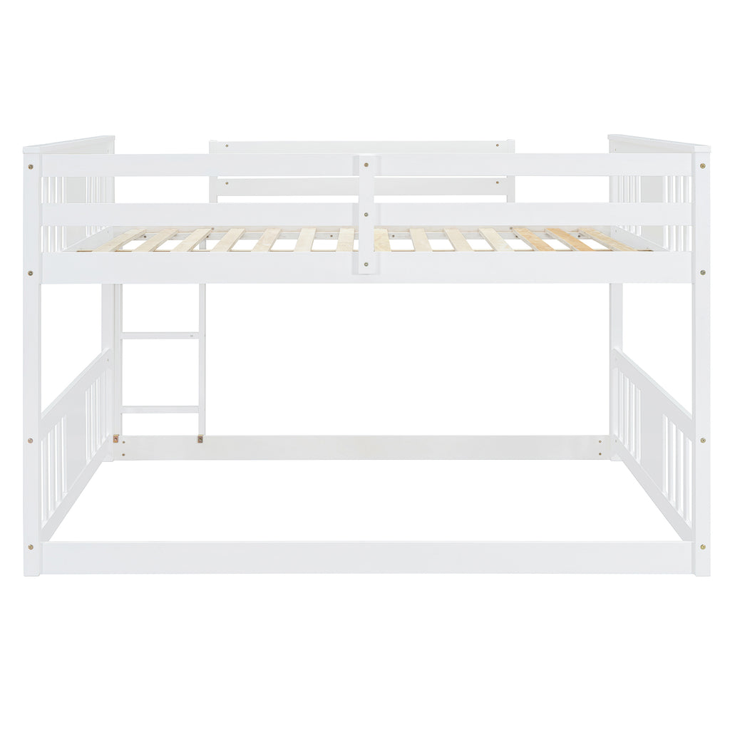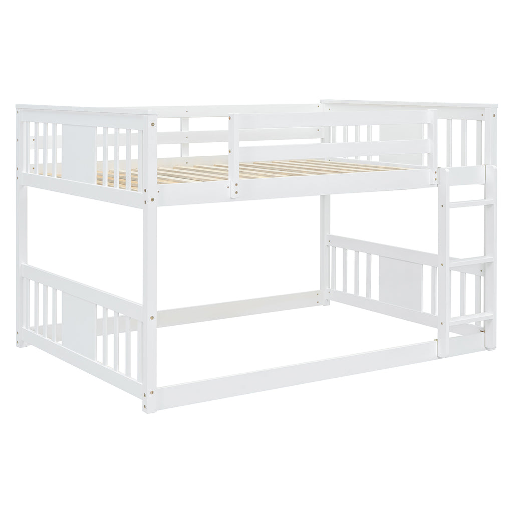 Maximize space with this elegant white full over full bunk bed, crafted from durable solid pine wood for lasting stability and safety. Featuring a sturdy design with full-length guardrails, it provides a secure and comfortable sleeping solution for any bedroom. Enjoy convenient setup as this bunk bed includes a slat kit, eliminating the need for a box spring.
