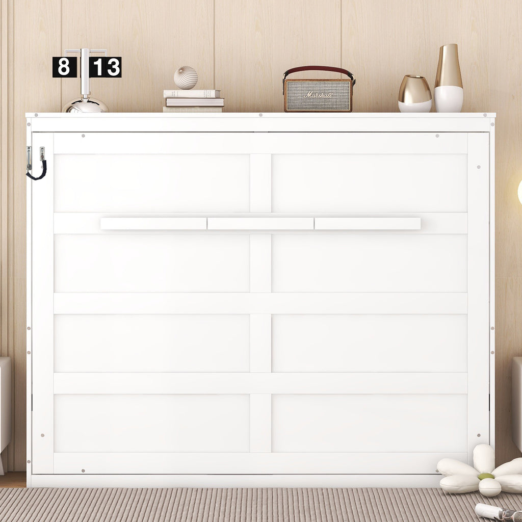 Maximize your living space with this stylish Full Size Murphy Bed, seamlessly transforming into a sleek cabinet perfect for any guest room, home office, or studio apartment. Experience superior comfort and support every night thanks to its innovative flexible slat system, eliminating the need for a box spring. Crafted from durable laminated MDF and plywood with a smooth dual piston mechanism, this white space-saving wall bed offers both elegance and lasting quality.