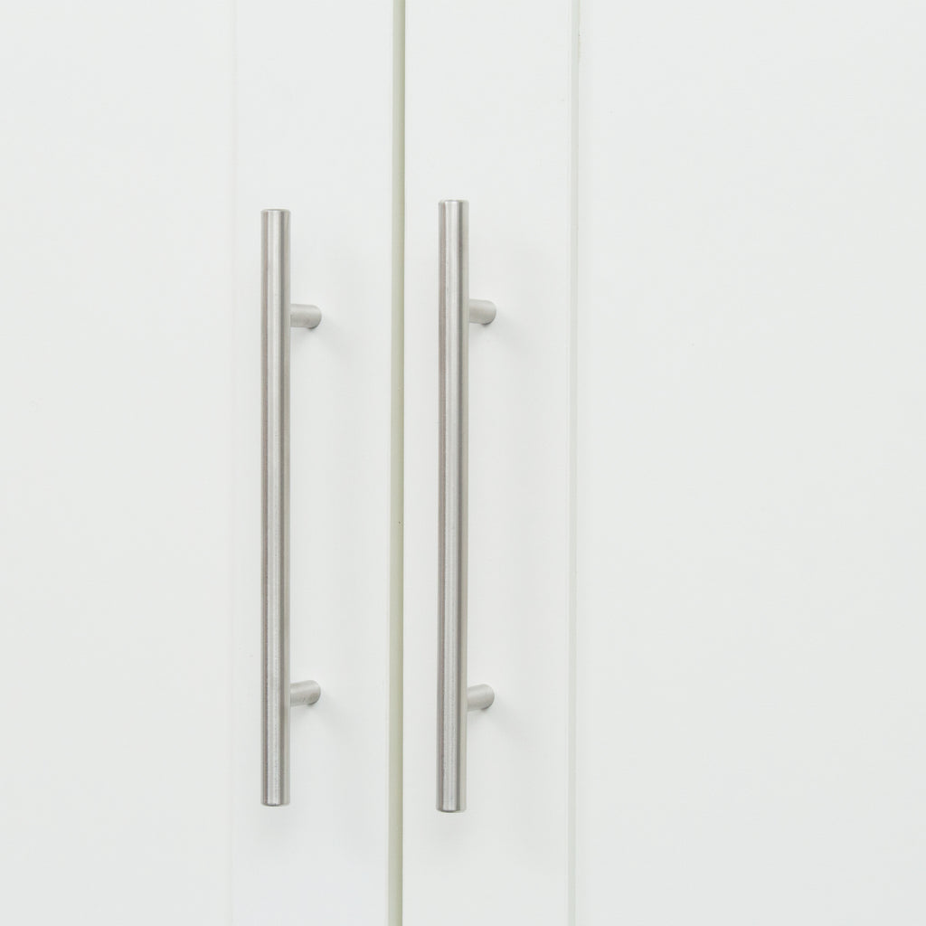 High wardrobe and kitchen cabinet with 2 doors, 2 drawers and 5 storage spaces,white
