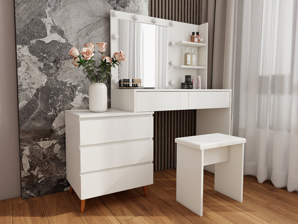 - Ergonomic Design: The inclusion of a matching stool provides a comfortable seating option, making the vanity table not only functional but also a pleasant space for daily grooming routines.