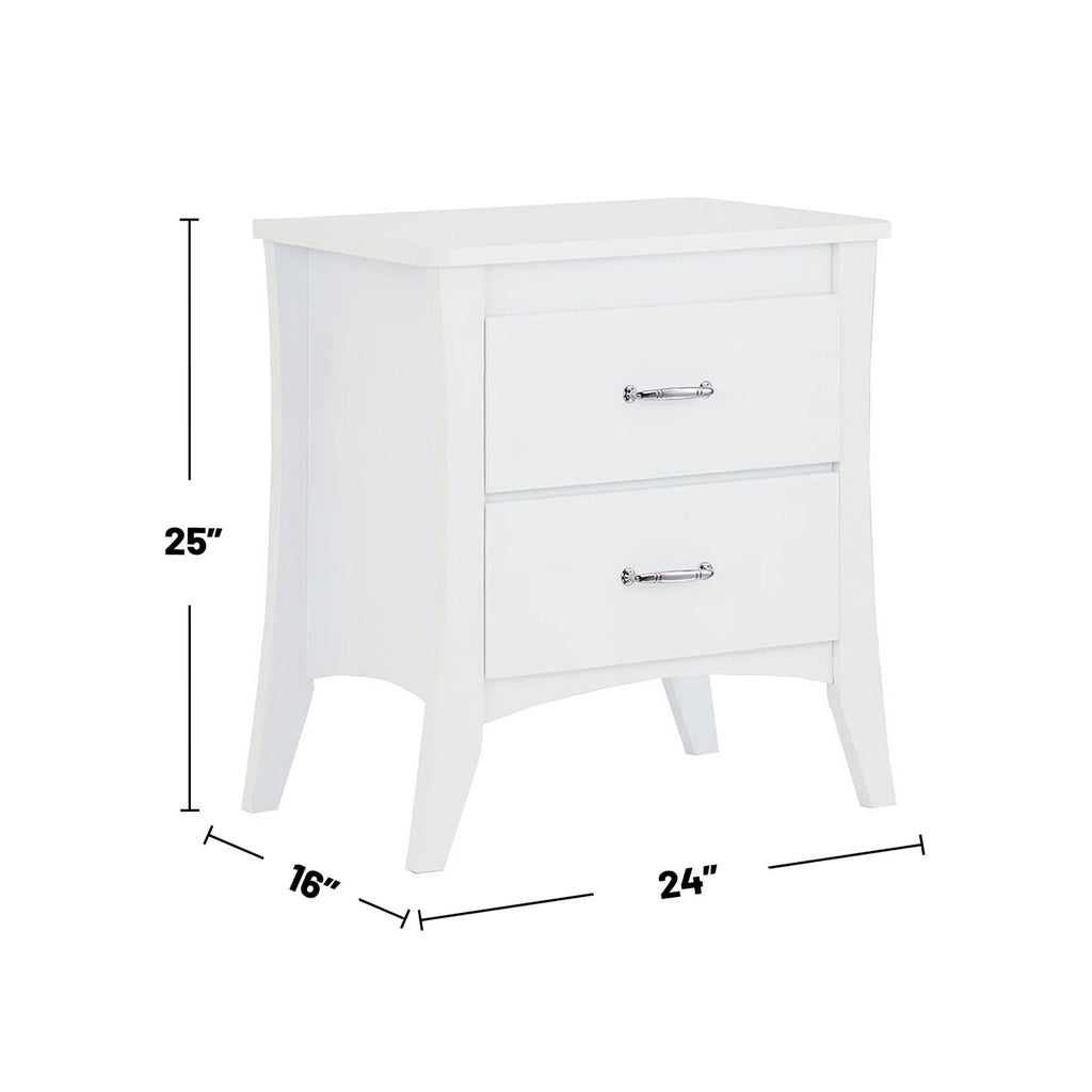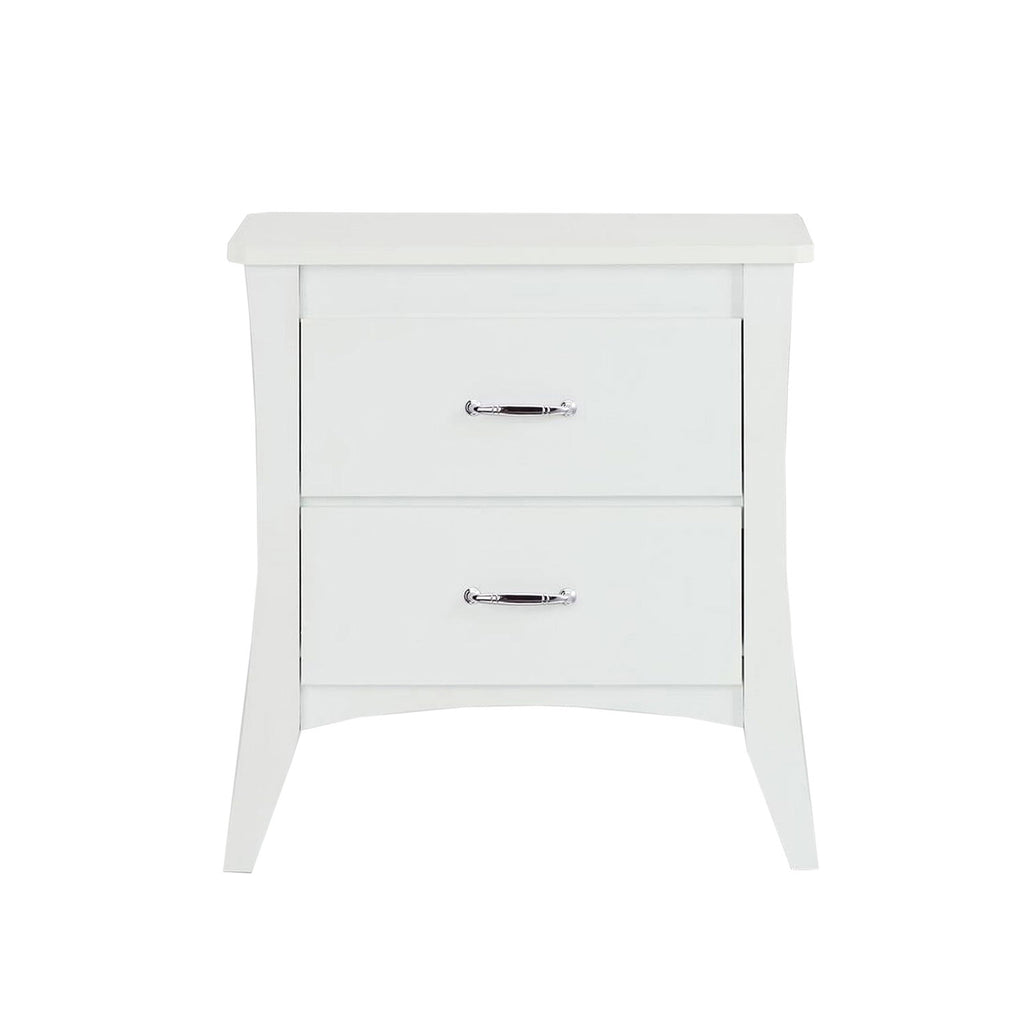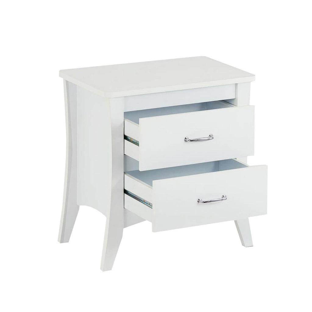 The nightstand showcases a style that is designed to impress. This space-saving bedside table gives you two full-size drawers, matching with the beautiful brushed handles. Made of high-quality PVC veneer materials, it demonstrates delicate craftsmanship and has the perfect design to enhance your room.