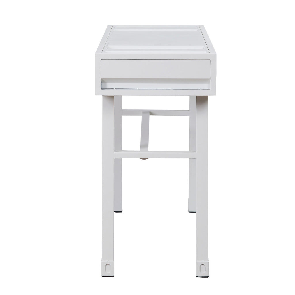 The unique vanity desk is accented with a recessed panel design. The desk’s clean line design will go with various styles of case good finishes and will become the focal point in any bedroom. This fashionable desk will accent your other bedroom furniture, transforming a room from ordinary into something playful.