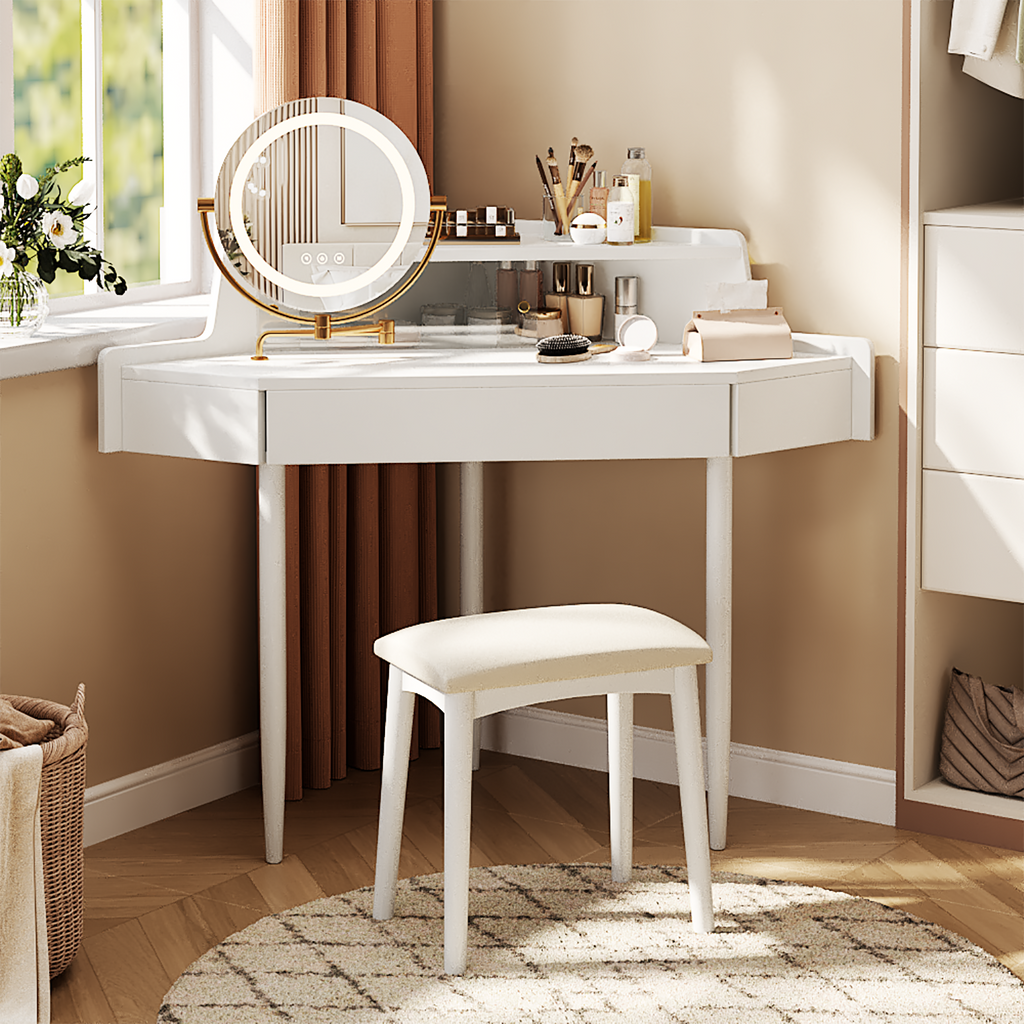 Corner Makeup Vanity with 360° Rotating LED Mirror