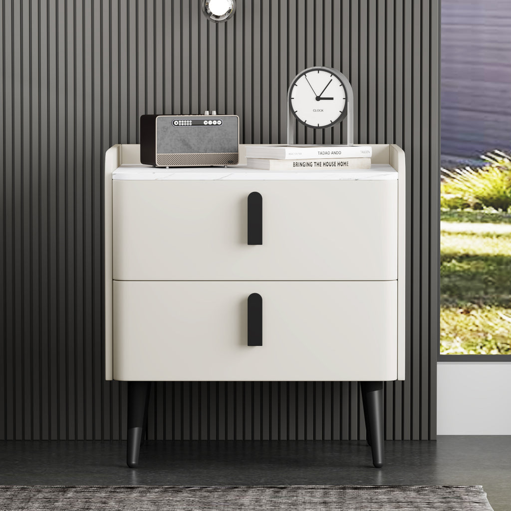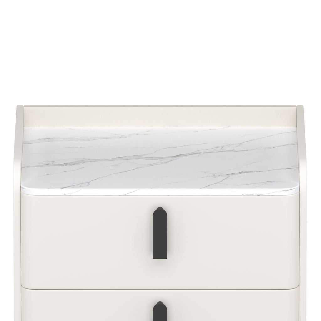 This nightstand features a marble-pattern tabletop that’s simple, elegant, and stylish. Its most distinctive detail is the raised guard on 3 sides of the tabletop, designed to keep items from falling off. The 2 spacious drawers provide ample storage for everyday essentials, helping you maintain a neat and organized room. The 4 supporting legs are finished with rounded bases, adding a touch of style while protecting your floors from scratches.