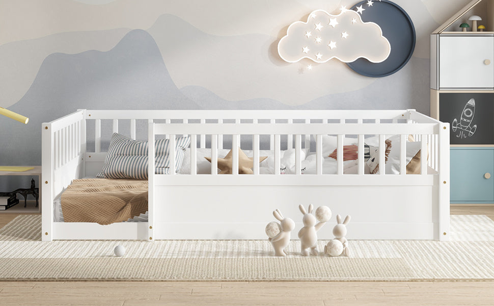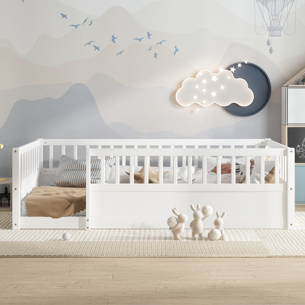 - [Floor Bed ] The Child's Play Floor Bed can be used as a children's bed or as a playroom. More than just a bed, it is a blank canvas for your child's imagination and can be used as the cornerstone of a play area, reading area or personal entertainment area.The Floor bed with solid wood baffle design to prevent children's hands and feet to clamp the risk of toys and various items falling risk.