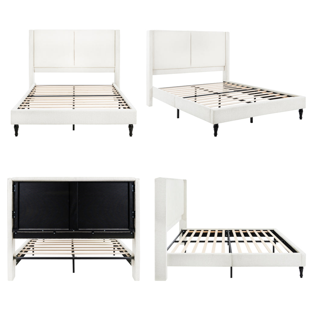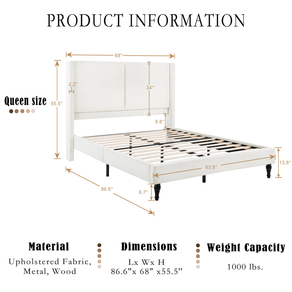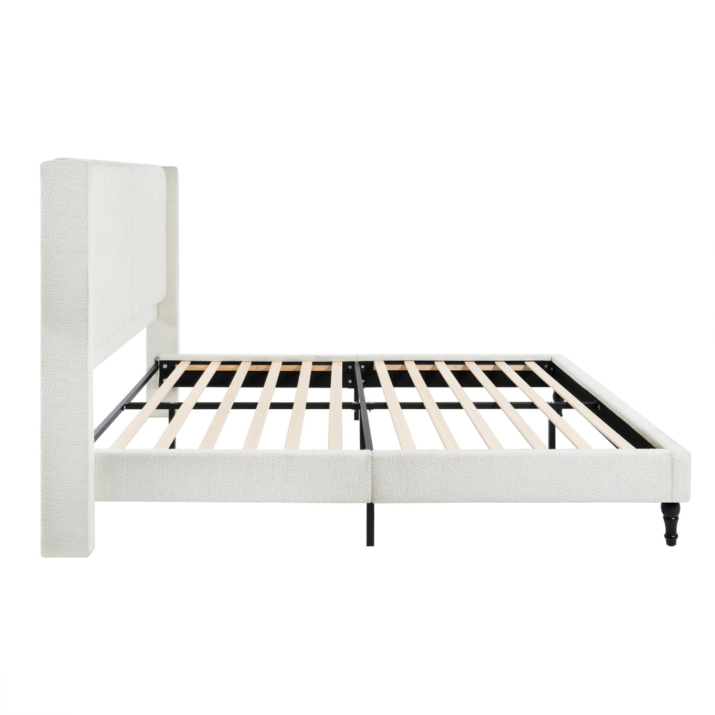 Experience unparalleled elegance with this Queen-size white high-back boucle bed, featuring a luxurious tufted design and premium soft fabric. Crafted with durable solid wood legs, it promises exceptional comfort and long-lasting stability for restful nights. Elevate your bedroom decor with this versatile and sophisticated bed frame, blending exquisite style with superior quality.