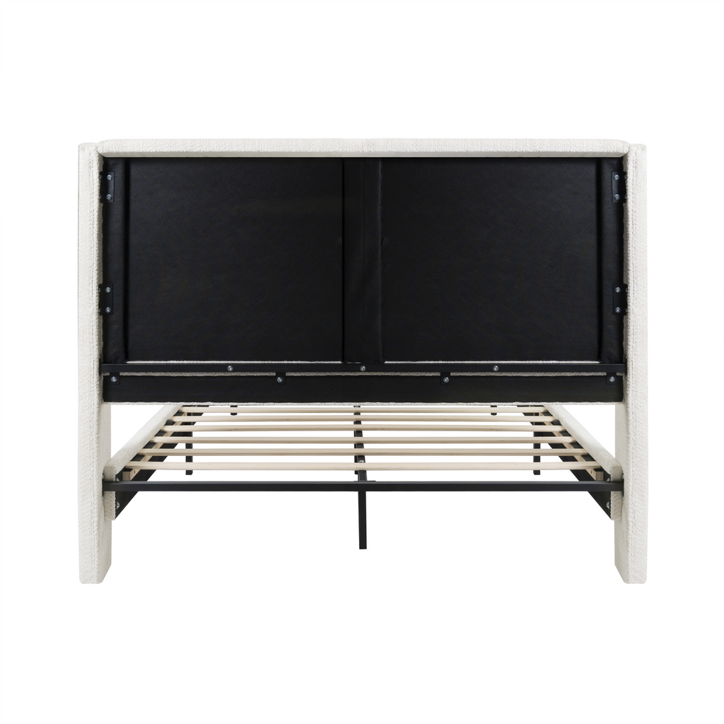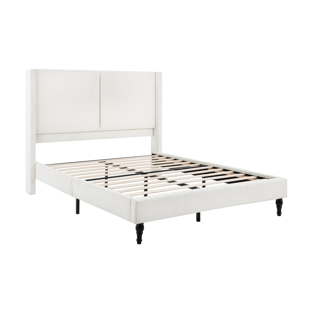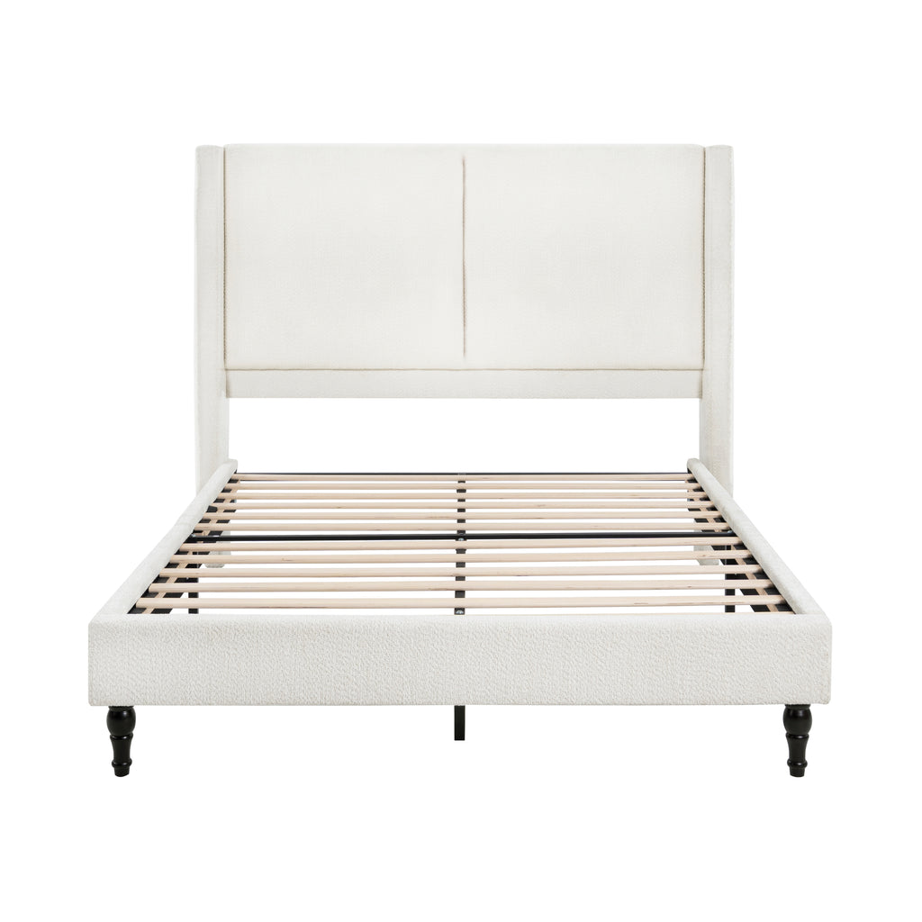 Experience unparalleled elegance with this Queen-size white high-back boucle bed, featuring a luxurious tufted design and premium soft fabric. Crafted with durable solid wood legs, it promises exceptional comfort and long-lasting stability for restful nights. Elevate your bedroom decor with this versatile and sophisticated bed frame, blending exquisite style with superior quality.