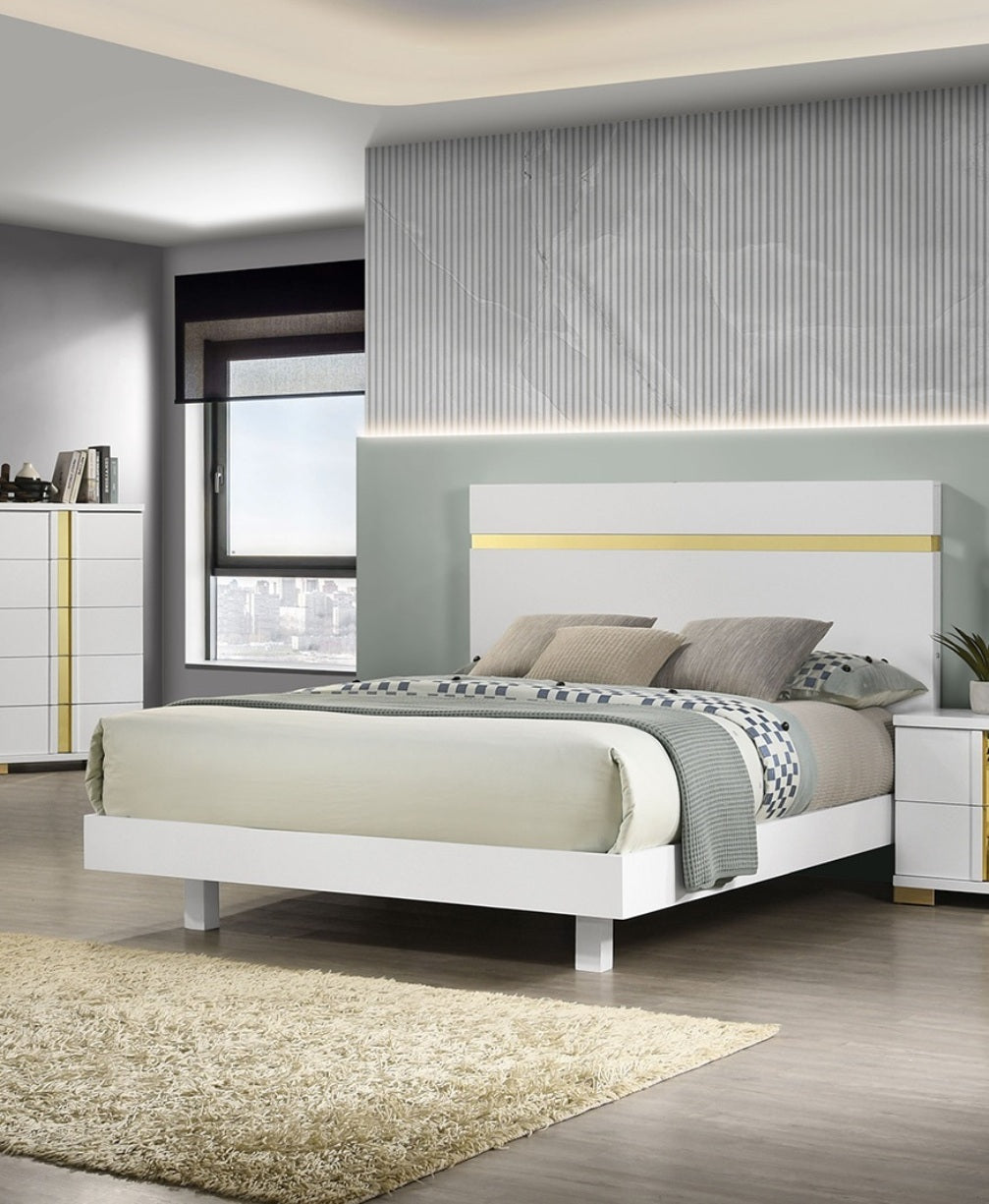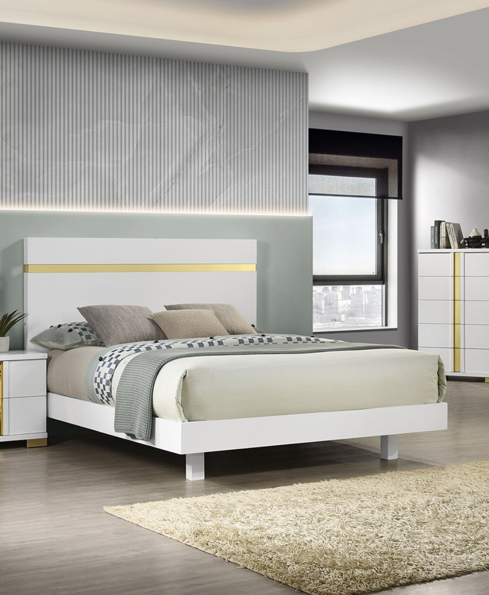 Elevate your bedroom with this contemporary Queen platform bed, featuring a sleek white finish, elegant acrylic trim, and captivating underbed LED lighting. Crafted from durable engineered wood and metal, it offers a stylish and sturdy foundation without the need for a box spring. Experience modern luxury and convenience with its mattress-ready design, perfect for any sophisticated sleep space.