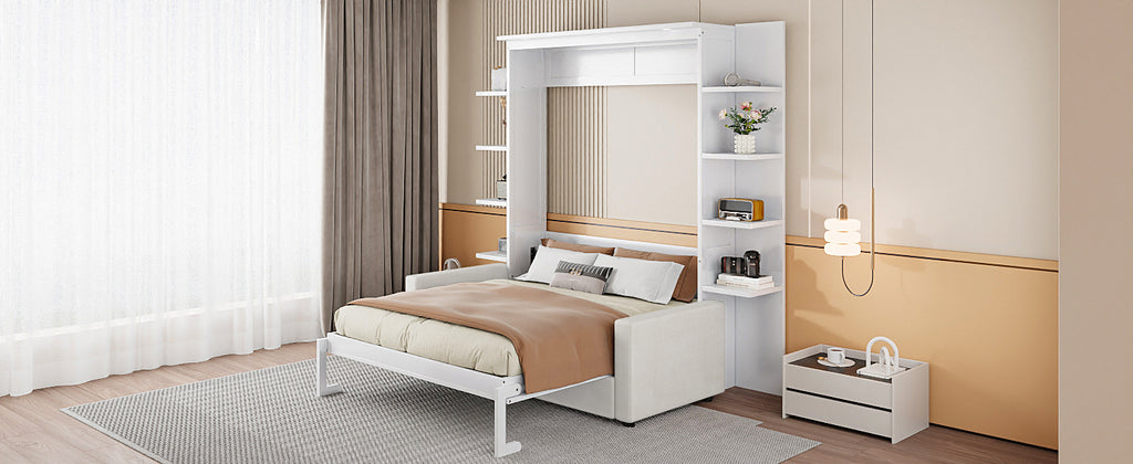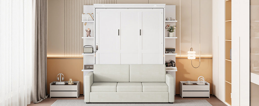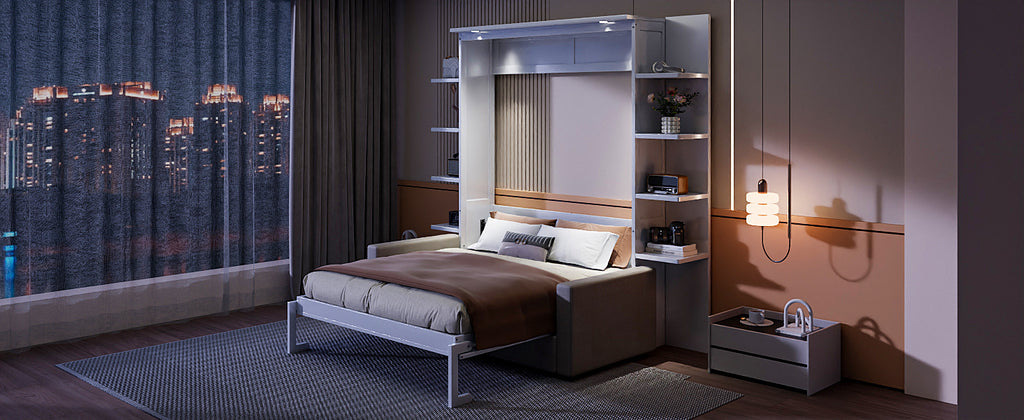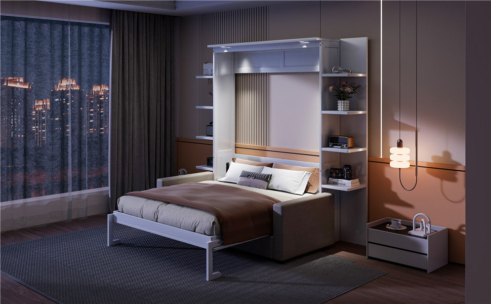 Maximize your living area with this versatile Queen Murphy Bed, expertly designed to fold into a sleek cabinet, freeing up valuable floor space. Perfect for guest rooms, home offices, or studios, it features a comfortable integrated sofa and an effortless pull-down mechanism for daily use. Crafted from durable laminated MDF and LVL with a robust dual-piston system, this stylish wall bed ensures lasting quality and convenience.