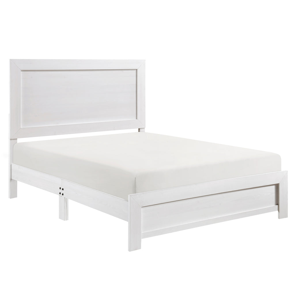 Elevate your bedroom with the modern rustic Corbin Queen Bed, featuring a chic white finish and realistic 3D wood grain texture. This elegant wood and engineered wood panel bed includes a stylish headboard, footboard, and rails for a complete look. Designed for easy assembly and requiring a box spring, it's the perfect foundation for a serene and contemporary sleep sanctuary.