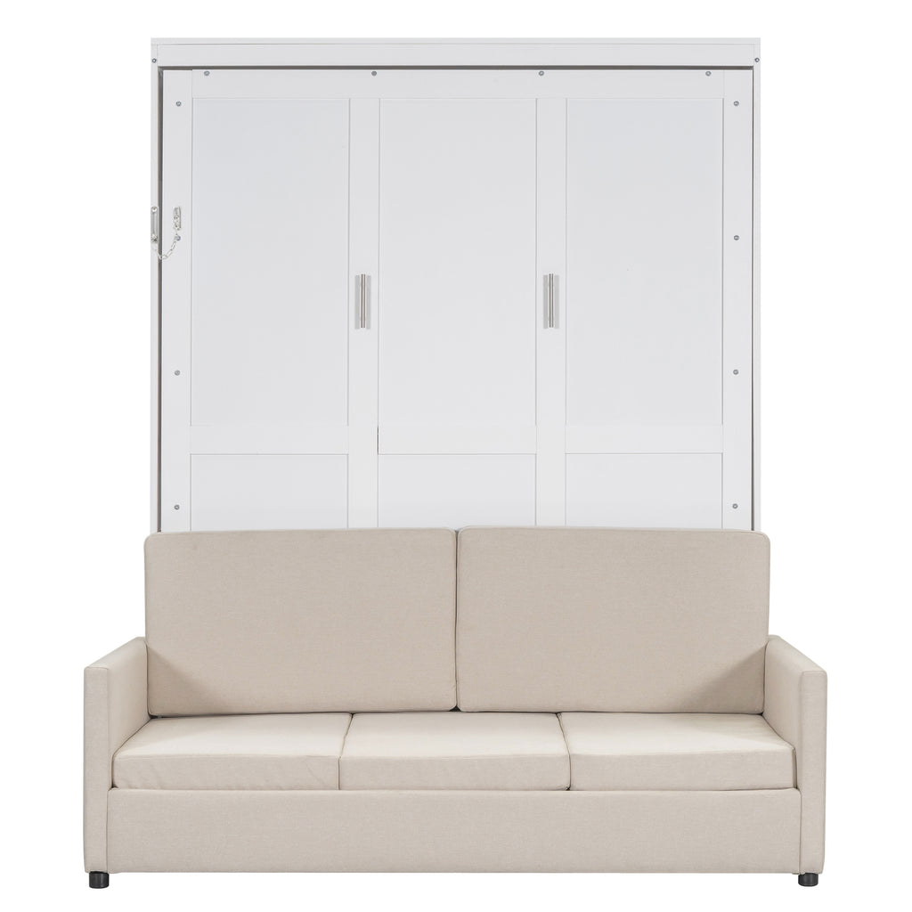 Maximize your living space with this Queen Murphy Bed, ingeniously designed with an integrated sofa for ultimate versatility. Effortlessly store your bed and mattress to transform any room into a tidy, multifunctional area. Crafted from durable MDF and plywood, this easy-to-use white wall bed offers superior quality and convenience for small apartments or studios.