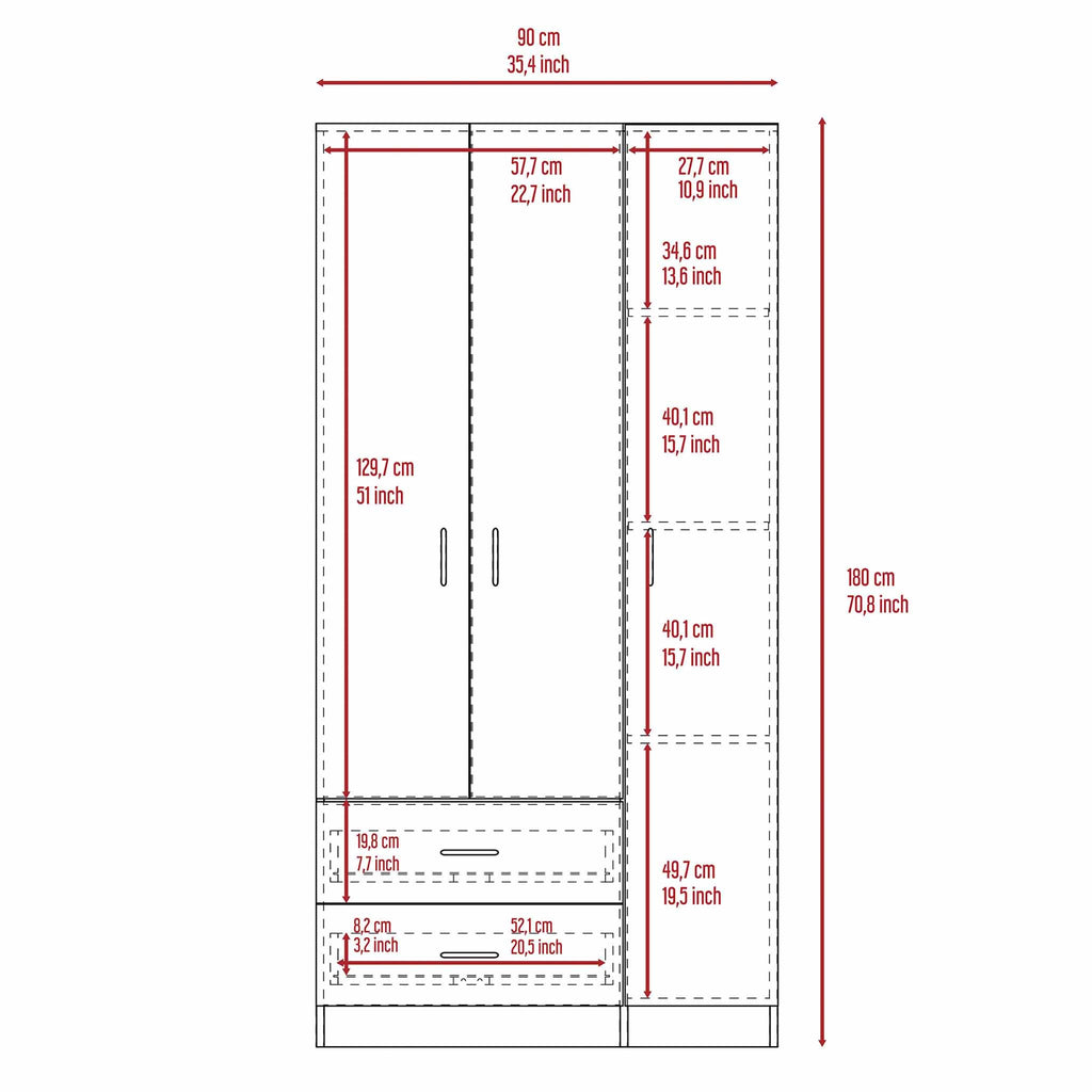 | Dimensions | 70.8 inches high x 35.4 inches wide x 18.5 inches deep |