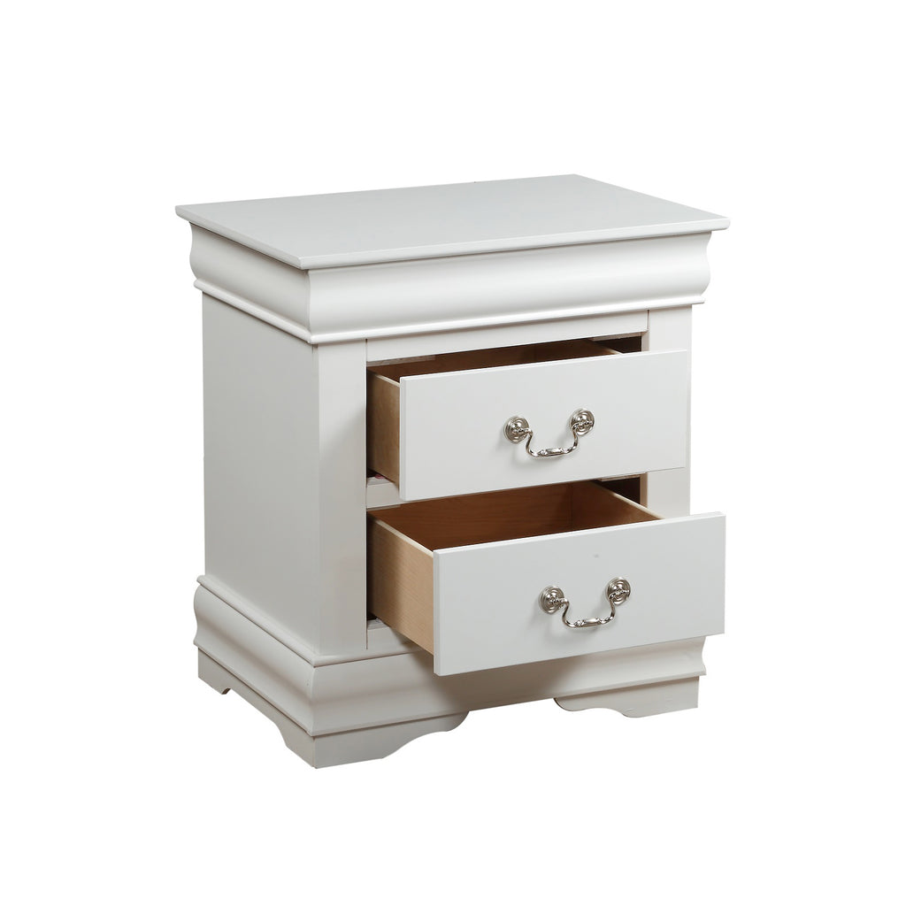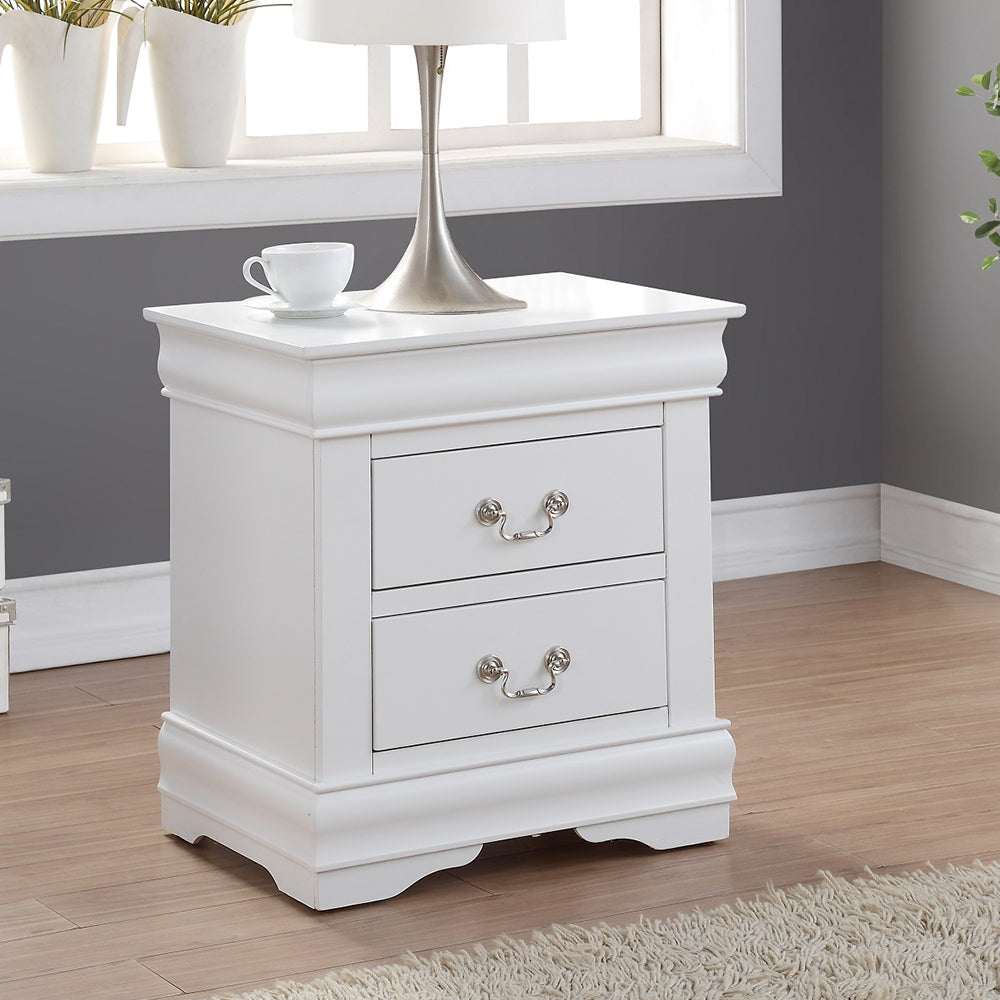 This contemporary nightstand will provide much convenience for your room decoration. Featuring two spacious wooden drawers, this nightstand provides plenty of storage for your toys, books, or daily essentials. Drawer fronts are accented with modern brushed nickel hardware. A good nightstand will bring great convenience to your room. So just bring it home to start an easier lifestyle.