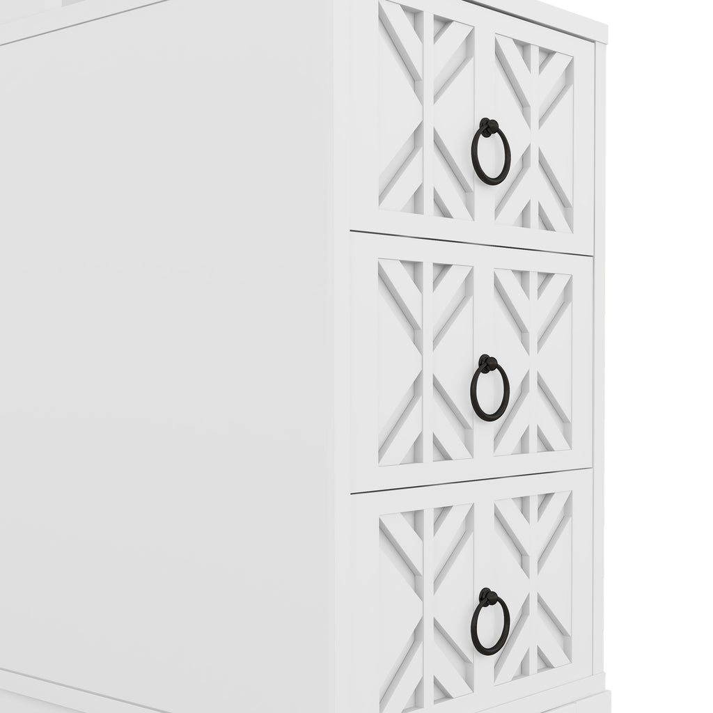 - Three Drawers with Round Metal Handles: It includes three spacious drawers for ample storage, perfect for keeping your essentials such as books, phones, and other small items neatly organized. Each drawer is equipped with a stylish round metal handle for easy access and a modern look.