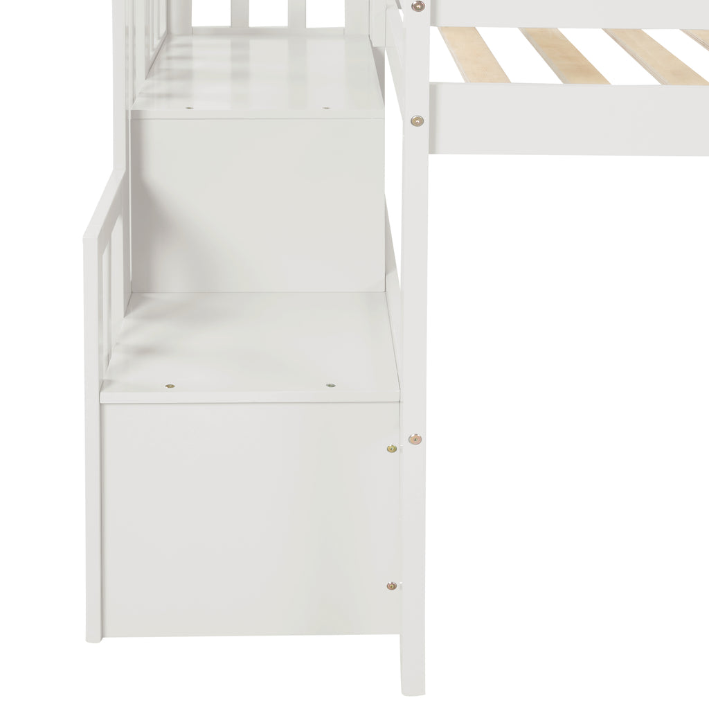 Loft bed with staircase,White