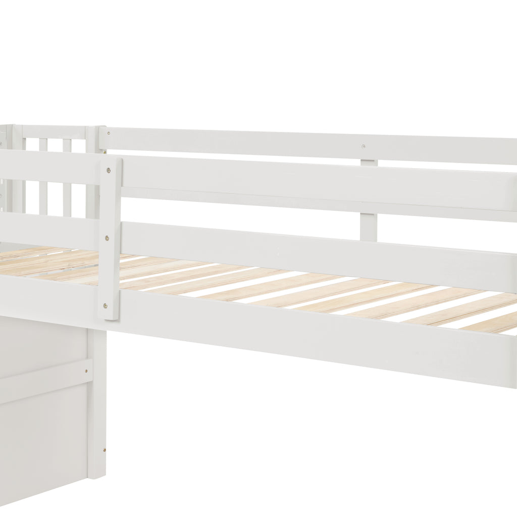 - Staircase The loft bed features sturdy staircase with handrails that guides and ensures the safety of the child. This is a convenient feature that is especially useful for younger kids who is unable to climb up a ladder, making the trip to the loft bed easier.
