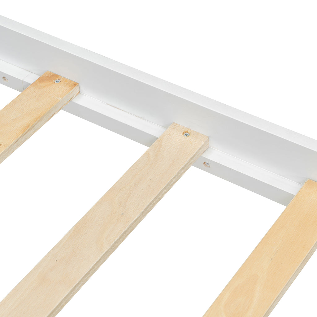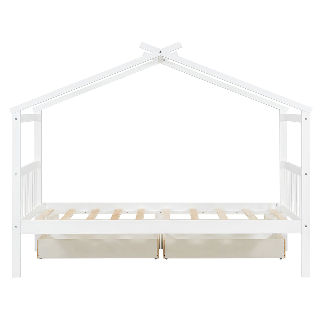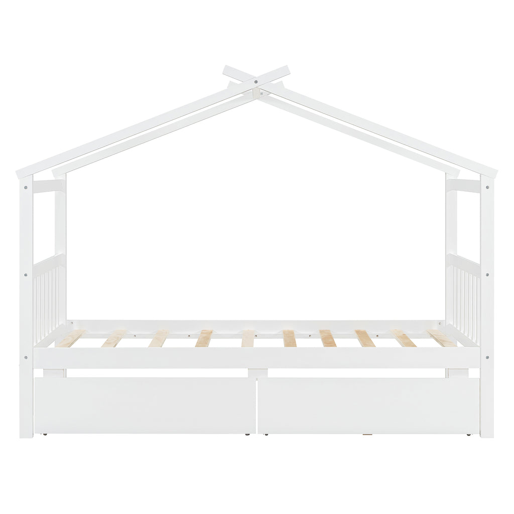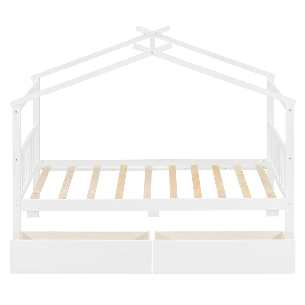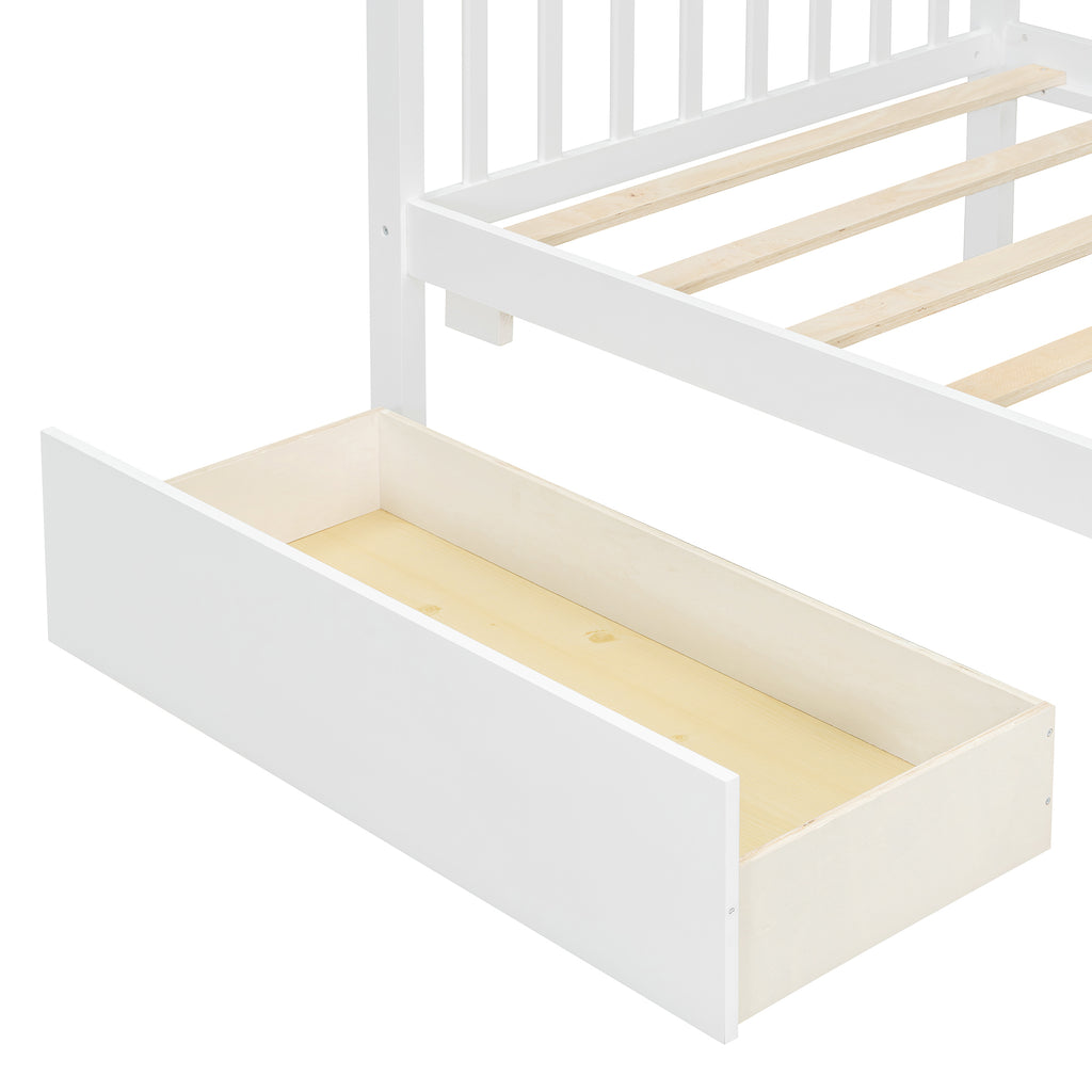 Transform your child's room with this charming Twin Size Wooden House Bed, featuring a whimsical sky roof and integrated drawers for essential storage. Crafted from solid pine wood and MDF, its durable construction ensures lasting quality and safety. This imaginative white platform bed creates a fun, organized, and secure space for dreaming and play.