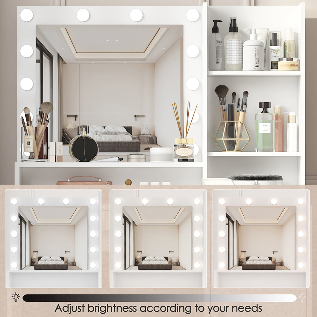 - Adjustable Color and Brightness Lights: The Vabches makeup set is equipped with 12 bulbs to provide exceptionally bright lighting, creating the atmosphere of a high-end makeup room. The lamp's brightness is adjustable, and it offers three different color modes, allowing you to customize the lighting to suit your needs.