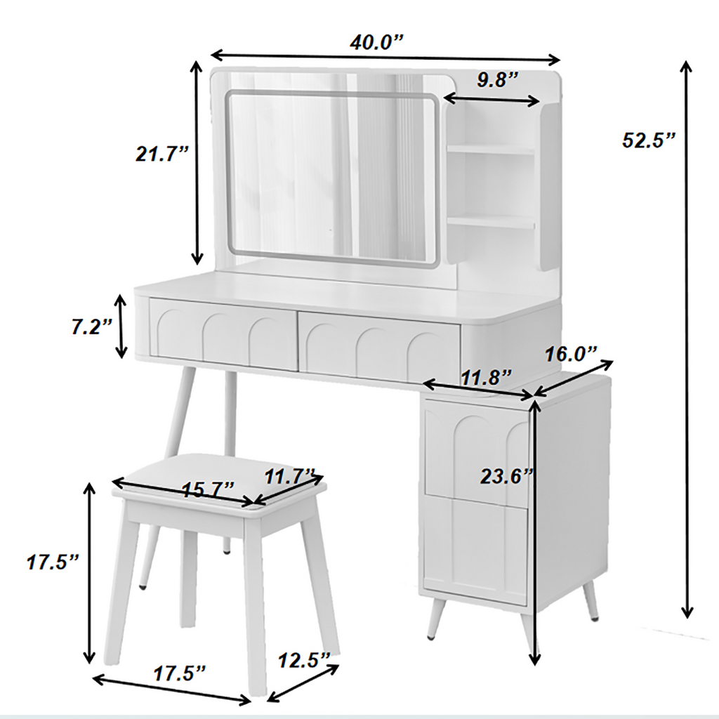 - High-Quality Materials & Stable Structure: Crafted from eco-friendly MDF, high-definition silver mirror, and strong metal legs, this dressing table ensures long-lasting durability. The vanity stool features solid wood legs and a soft PU pad, providing a comfortable seating area. The high-quality materials not only ensure a smooth touch but also contribute to the overall stability and longevity of the product.