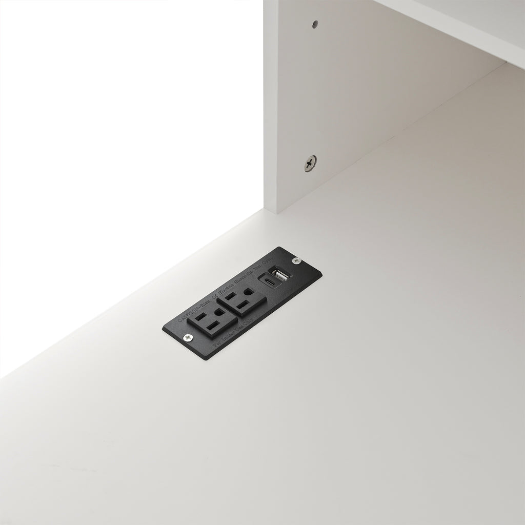 - 2. Versatile Makeup Vanity Desk with Charging Station: This versatile vanity includes a built-in charging station on the right side of the tabletop, equipped with 2 standard outlets, 1 USB port, and 1 Type-C port—making it easy to charge your devices anytime.