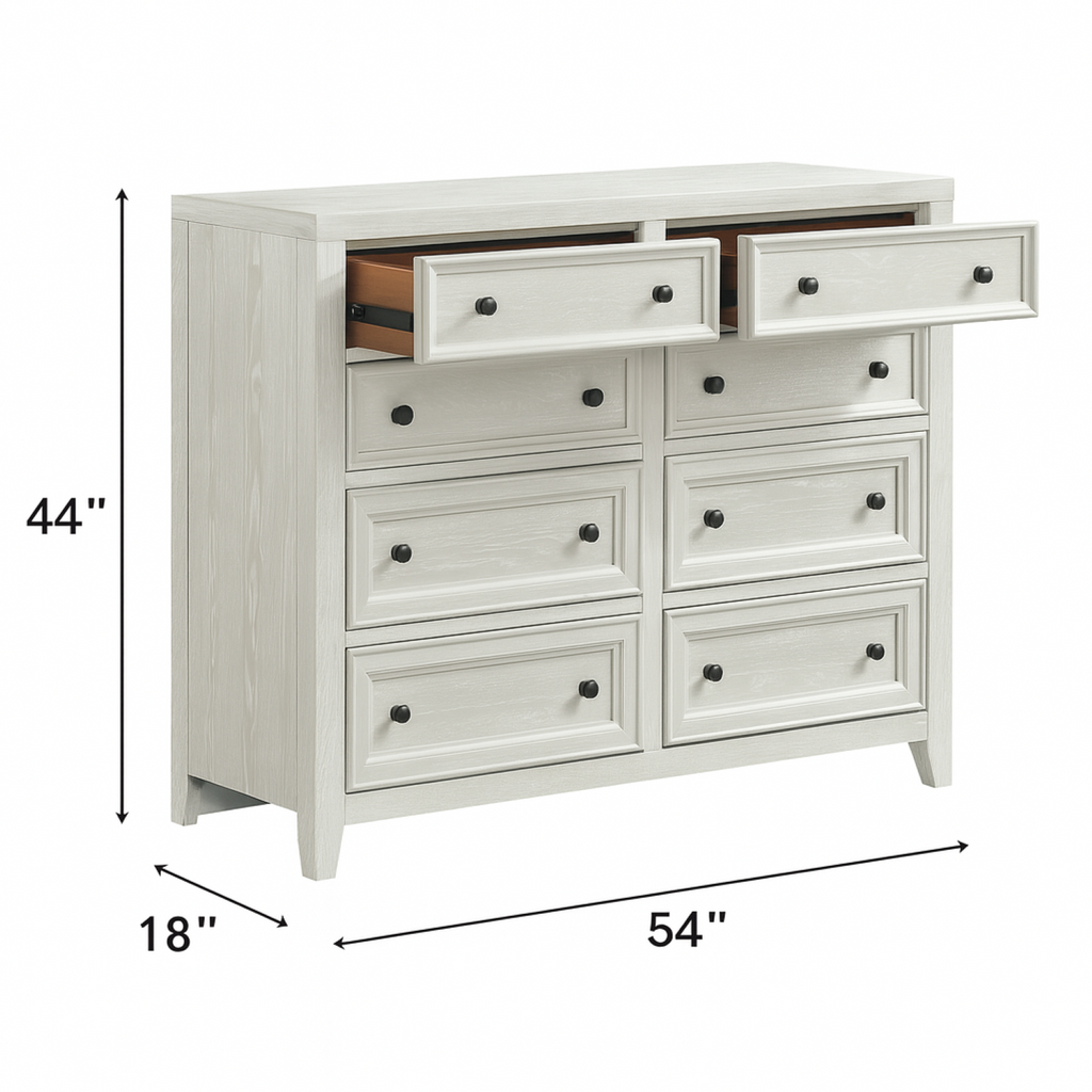 - Eight spacious drawers offer ample storage for clothing and accessories