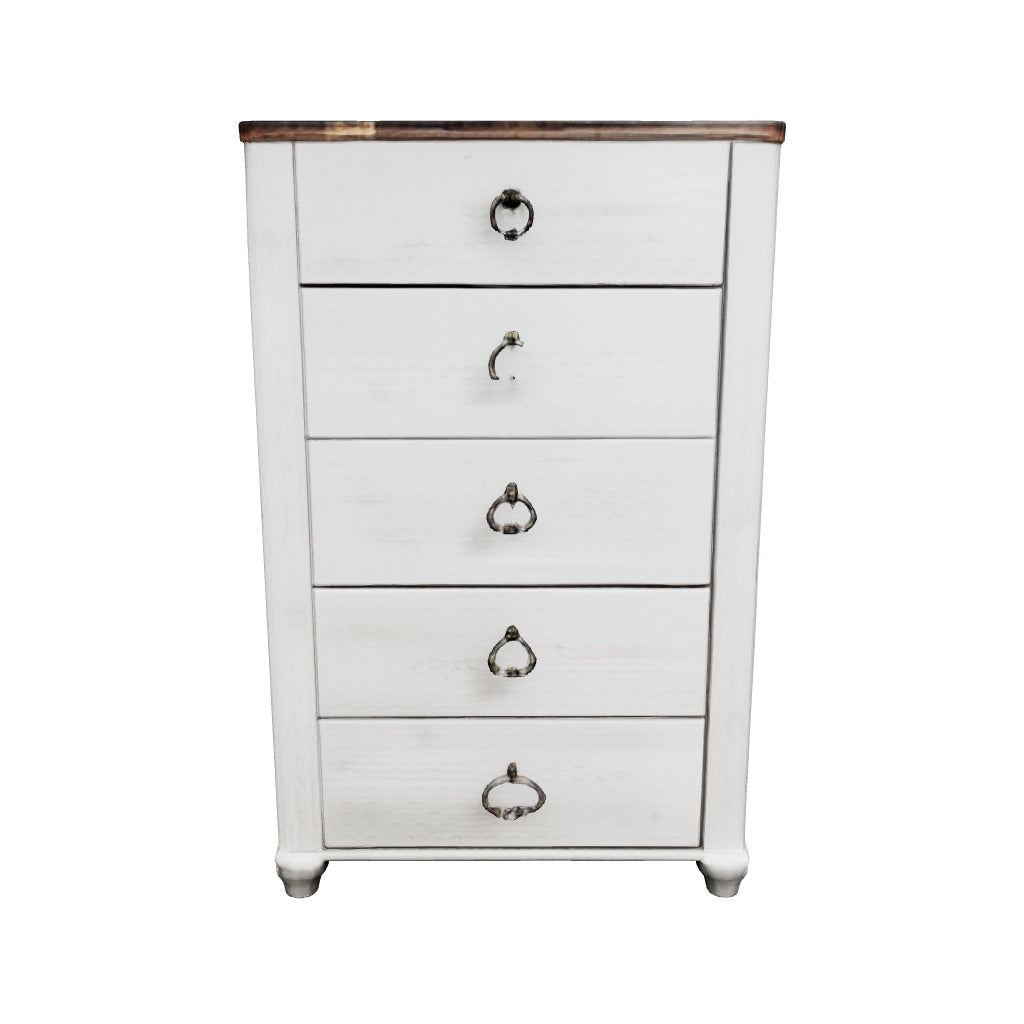 This chest of drawers is the ultimate statement piece for your coastal cottage or shabby chic inspired retreat. A whitewash finish on the drawers and sides is wonderfully easy on the eyes. Paired with the unique plank-effect top, it’s a driftwoody look that has our minds drifting away to beachy-keen escapes.