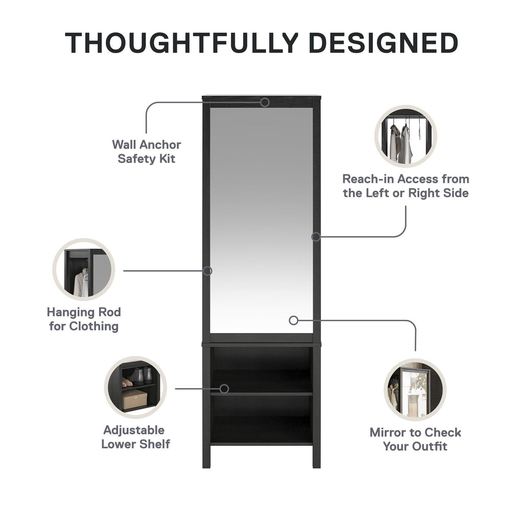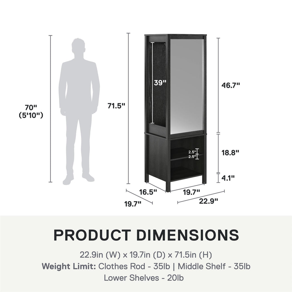 Say goodbye to closet clutter with the Wimberly Wardrobe. Perfect for bedrooms with limited space, this wardrobe offers three shelves for storing shoes, purses, hats, or bins, while a clothing bar keeps your everyday items neat and wrinkle-free. Before heading out, check your outfit in the wardrobe mirror. Crafted from durable materials, this wardrobe ships flat to your door for assembly. Once assembled, the Wardrobe measures to be 22-7/8'(W) x 19-5/8'(D) x 71-1/2'(H).