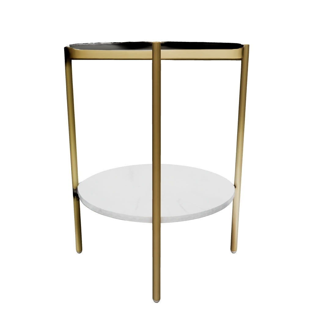 Add a bright spot to your contemporary space with this end table. A clear glass top provides a great view of the replicated Carrara marble shelf below. A goldtone finish on the metal frame heightens the modern aesthetic.