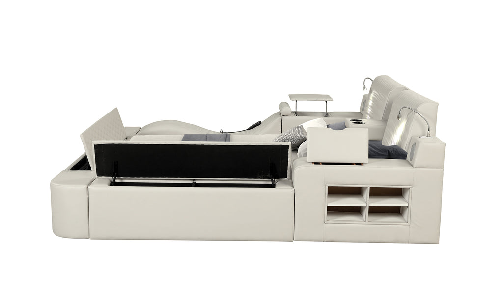 The Zoya Bed is the ultimate enclosure system, offering everything you need in one ultra-urban design, perfect for transforming your bedroom. This futuristic bed is equipped with a remote-controlled massage chaise lounge, built-in Bluetooth speakers, dual reading lights, and convenient storage solutions. The integrated charging station with USB hookups ensures you never have to leave the bed. The cushioned headboard and durable engineered wood frame provide maximum comfort and longevity. Available in Beige, Gray, Black, and Brown, and in King and Queen sizes, the Zoya Bed is a revolutionary, all-in-one solution for modern living.